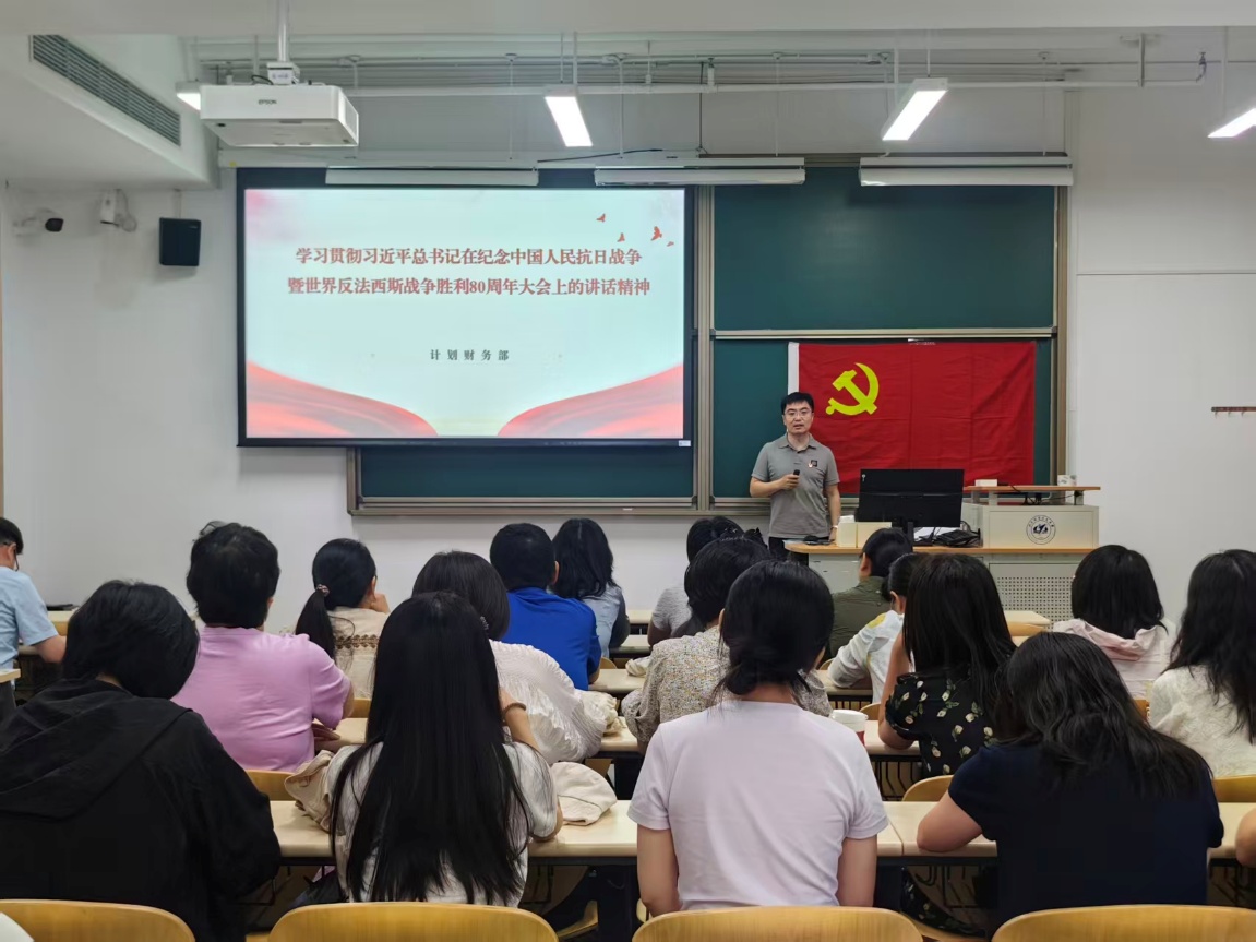 为铭记历史、缅怀先烈、传承弘扬伟大抗战精神,9月10日,bw必威西汉姆联组织全体人员集中学习,党支部副书记张所鹏围绕“学习贯彻习近平总书记在纪念中国人民抗日战争暨世界反法西斯战争胜利80周年大会上的讲话精神”主题,讲授专题党课。
