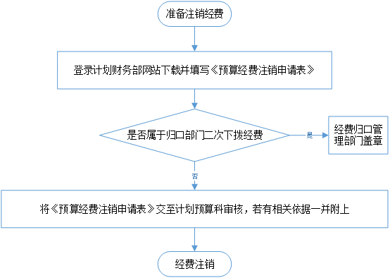 3.将《预算经费注销申请表》交至计划预算科,若有相关依据一并附上;